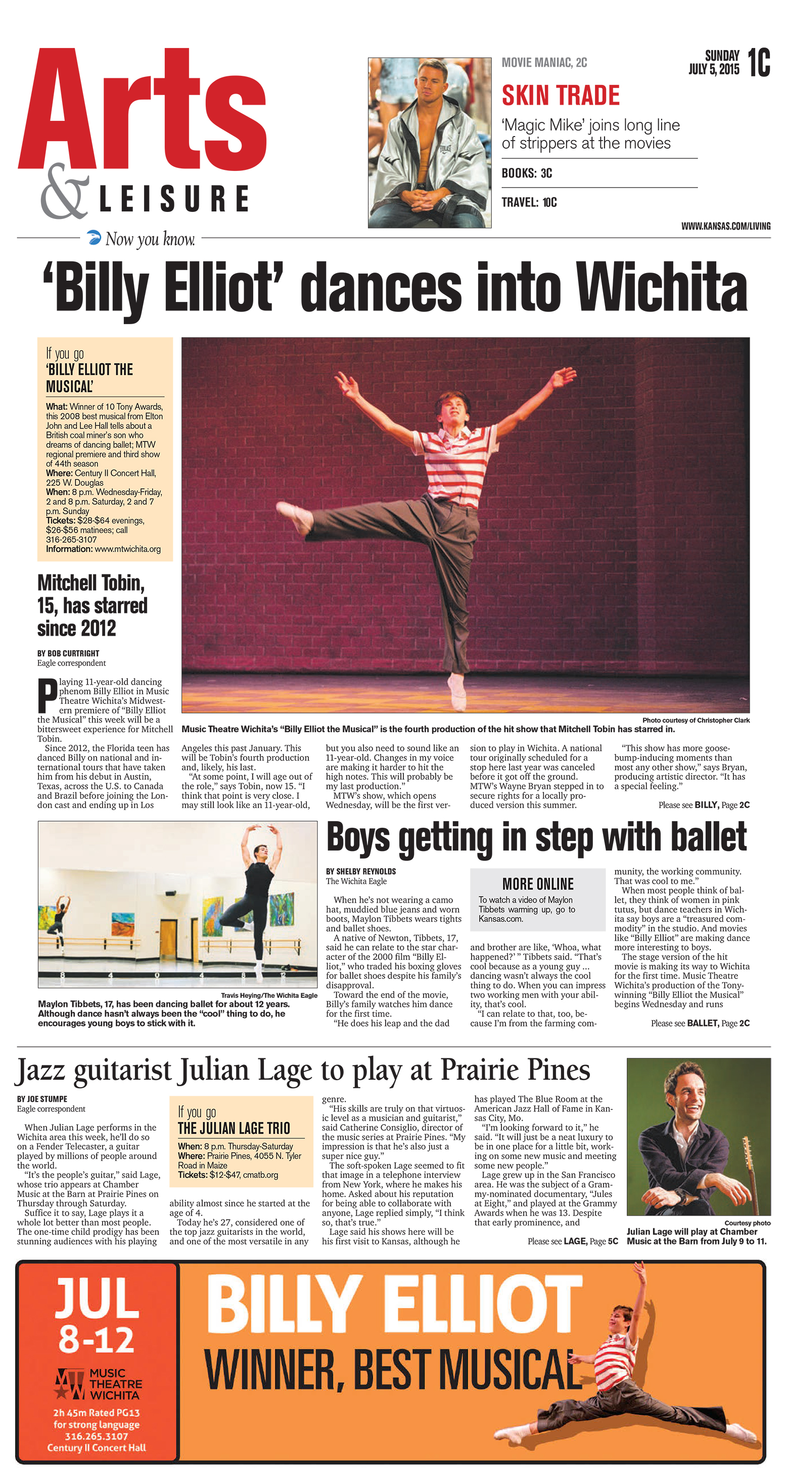When most people think of ballet, they think of women in pink tutus, but dance teachers in Wichita say boys are a “treasured commodity” in the studio. And movies like “Billy Elliot” are making dance more interesting to boys. The stage version of the hit movie is making its way to Wichita for the first time. Music Theatre Wichita’s production of the Tony-winning “Billy Elliot the Musical” begins Wednesday and runs through July 12.